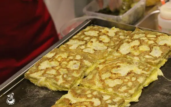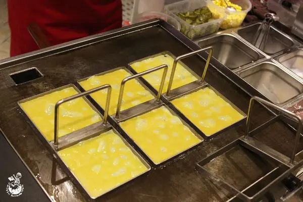 ▲才剛開始觀摩沒多久,看到鐵板上蛋液啵啵啵啵的畫面,貪吃的友人肚子已經不爭氣的咕嚕咕嚕,開始喊餓了!!!!