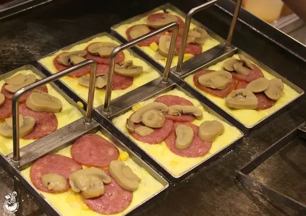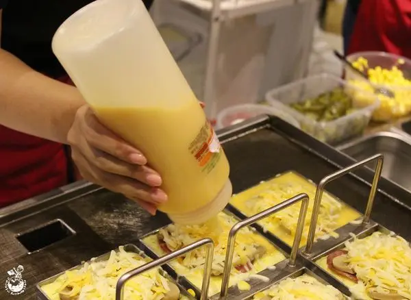 ▲內含新鮮雞蛋 、韓國進口酸黃瓜、蘑菇以及香濃的莫札瑞拉起司,還有特製的pizza醬
