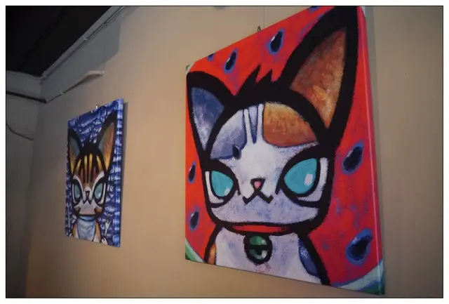 牆上的可愛大眼貓畫是設計師Kenny王信明的作品~色彩好繽紛亮眼