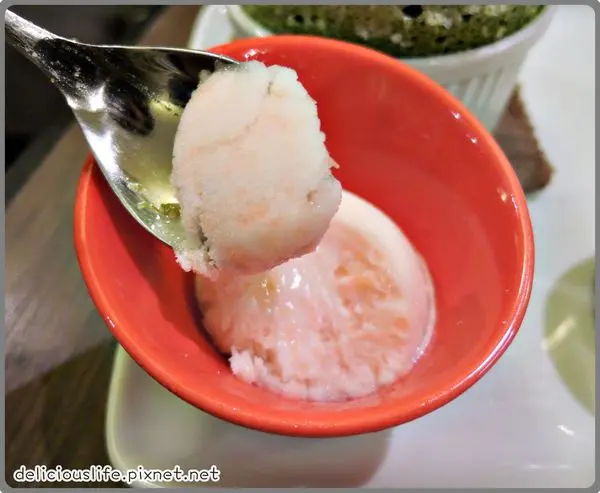 葡萄柚雪酪質地似冰沙,柚香中帶點苦澀,很爽口蠻不錯