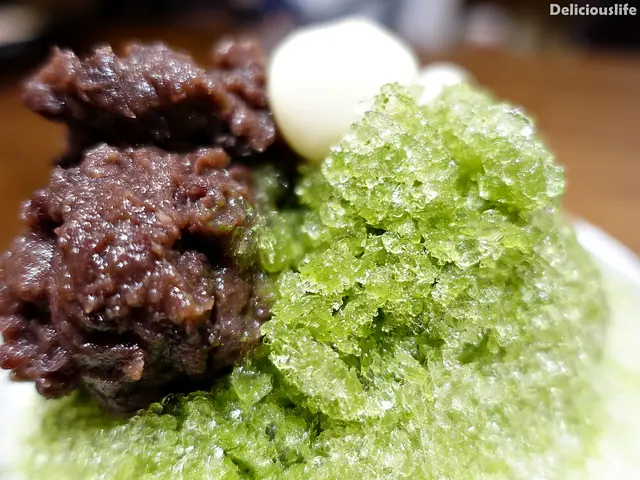 一大球的抹茶冰淇淋搭配白玉、紅豆,光看就覺得涼快!