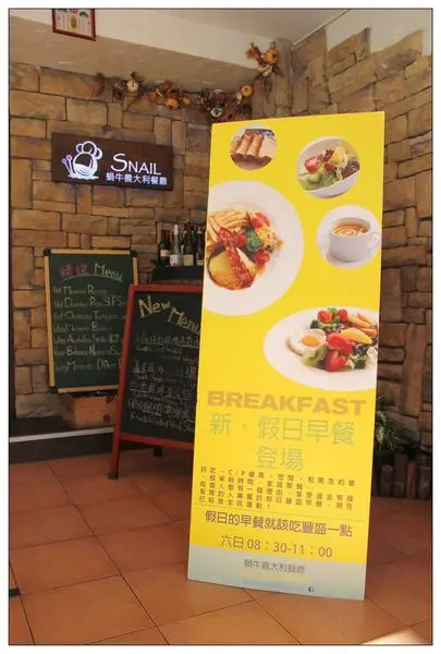 這是近日推出假日限定早午餐的☄蝸牛SNAIL義大利餐廳☄招牌上寫的一句話