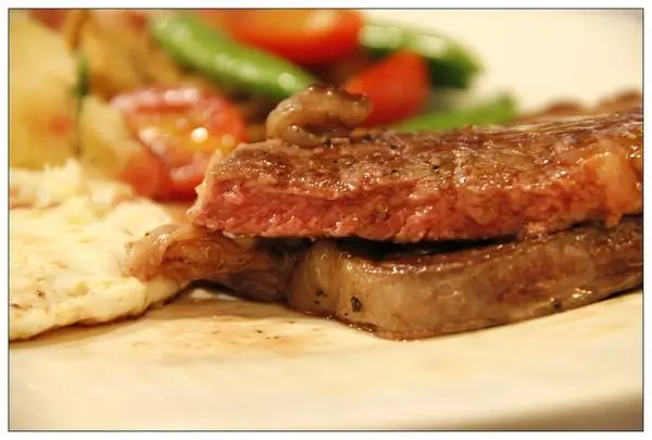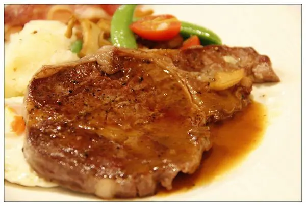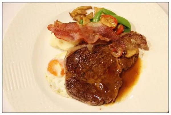 早餐的主餐從牛排、雞排、鮭魚到常見的火腿香腸都有