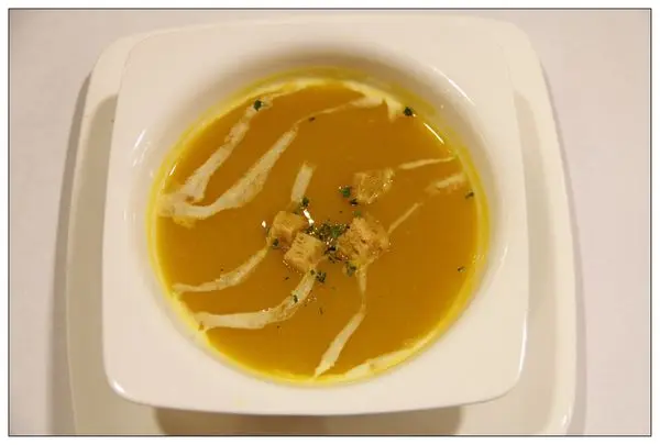 喵爸點的南瓜濃湯~我覺得味道有點不夠濃郁~