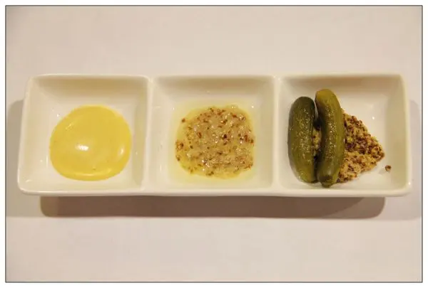 搭配德國豬腳的醬料有蜂蜜芥末醬、檸檬芥末籽以及酸黃瓜
