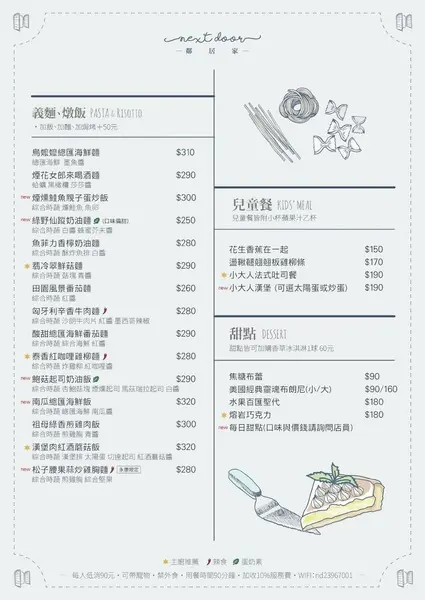▲菜單:義大利麵、燉飯、兒童餐、甜點