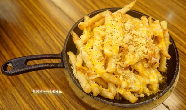 薯條不再是死板的薯條,你可能吃過鹹的,但絕對沒吃過甜的,而且又是永康店限定,真的只要看限定就想點來吃看看...以鑄鐵鍋盛裝上桌,淋上煉乳醬,然後再灑上花生粉,當然還有起士,酥脆的口感搭上鹹甜鹹甜的滋味,沒一下子就被我們分食完畢