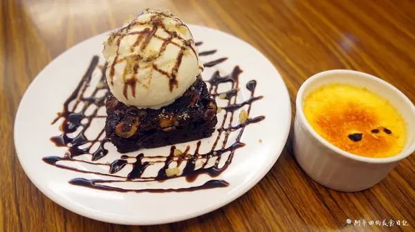 ▲套餐甜點:小布蕾、小布朗尼,小布蕾口感滑嫩,布朗尼搭配上頭的香草冰淇淋入口,感覺更清爽
