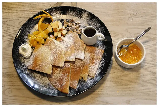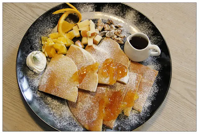 小菲還蠻喜歡將鬆軟的煎餅沾著柚子果醬一起入口~
