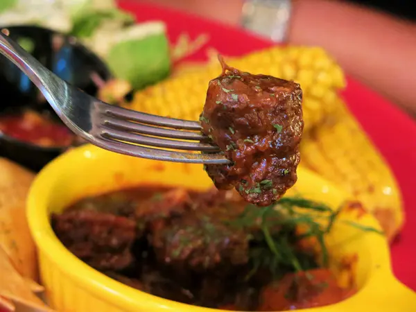 加勒比海海島菜系獨特以大量水果、香料入菜的特色,讓古巴燉牛肉的牛肉與醬汁香氣真是濃得化不開!帶著微辣香料氣息