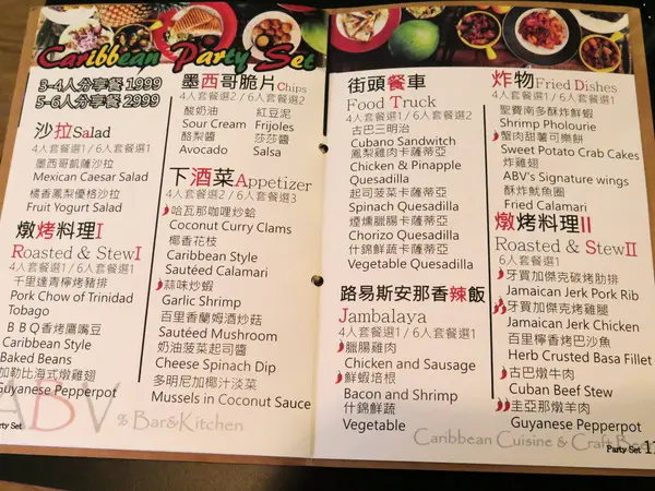 ABV加勒比海餐酒館很棒的一點是,將各式沙拉、燉烤物、炸物、下酒菜等,匯集成可多人分享的套餐
