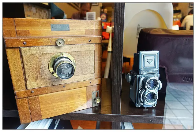 入口的櫥窗處展示了不少古董相機非常吸睛