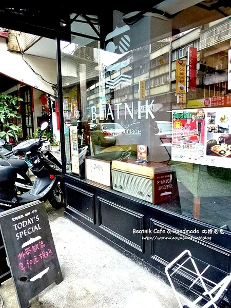 【Beatnik Cafe & Handmade 比特尼克】門面不是很大,加上以黑色為主軸,讓人感覺有點低調~如果路過走過没發現而錯過就可惜啦... 因為這低調的背後隱藏了讓人一吃會豎起大姆指的創意刈包及手作甜點呦!!