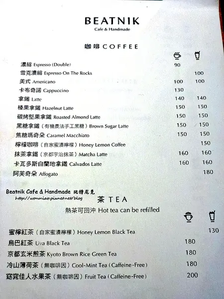 菜單上的飲料冰的熱的都有明確標示,也有中英文對照及註明成份,簡約卻不失詳盡!
