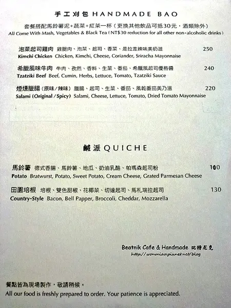 Beatnik沒有華麗、張牙舞爪的裝潢與包裝,我們對這個社會最大的叛逆,就是保持對自我的真誠。 (以上內容摘自比特尼克官網臉書) 個人尤其喜歡最後一句... 一如比特尼克不講求包裝嘩眾取寵的經營理念,以真誠研發做出天然美味的餐點,堅持自己的信念,從原料,餐具...的嚴選,手作甜點加上創意發想的刈包輕食,讓汪喵每一口都感覺得到用心~