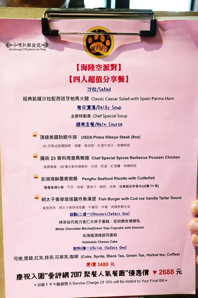 店家為了"慶祝入圍愛評網2017聚餐人氣餐廳",特別推出"海陸空派對",原價$3480,現在優惠價 $2688