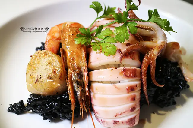 以花蓮芋香米做的餐點,店家堅持採用台灣在地食材製作,米粒飽滿綿潤,讓充滿海味的墨魚醬汁,滲透到米粒當中,吸飽湯汁後,最後收汁,米粒是富有湯汁水份的,完全迎合台灣的口味及喜好,以米粒的香甜及綿潤口感,深深鎖住饕客的味蕾!!!