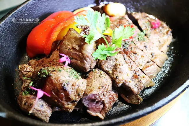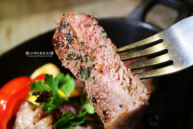 因為煎至6~7分熟,所以有部分紅肉,保持牛肉肉質的,鮮嫩度及口感的咀嚼感,肉質軟嫩不柴,搭配些許的海鹽及黑胡椒調味,不會過多的調味,展現原始的肉質的美味!!!