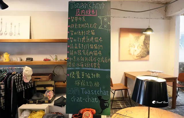 Toast Chat有些小小的店規,大家要一同配合才能和貓咪和平相處喔,另外提醒大家,這邊不提供12歲以下小朋友用餐,請大家留意。