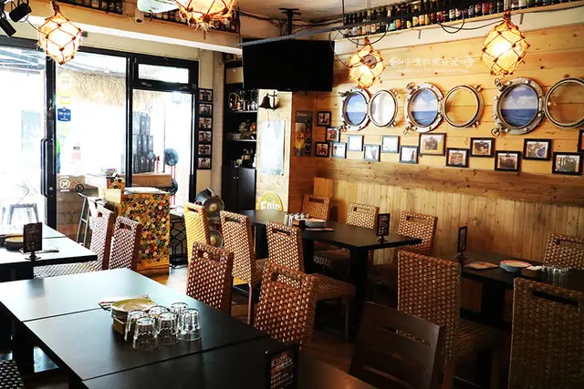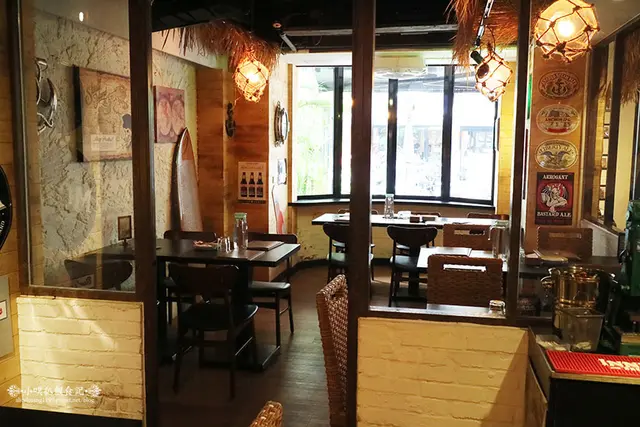 店內充滿加勒比海的異國風情,這讓我想到神鬼奇航中的傑克船長,牆壁上有船上的觀景窗,真有種在海盜船上的感覺