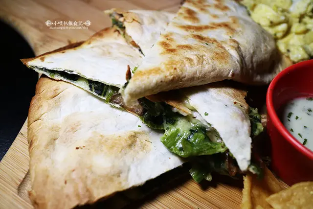 墨西哥餅皮Q軟有嚼勁,裡面的起司很濃郁,菠菜清新爽口,整體走健康.清爽的路線