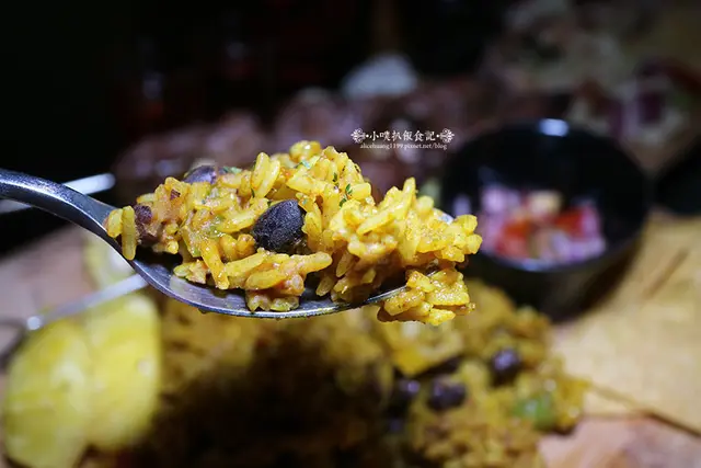 充滿濃濃的異國風情,以黑豆拌炒米粒,加入眾多辛香料,我聞到茴香跟孜然的香氣,米粒是細長條型的香米飯,富有口感及嚼勁,但也有濕潤度,所以不會乾口
