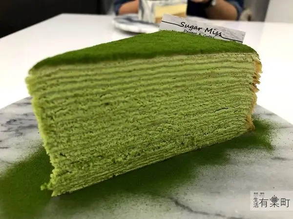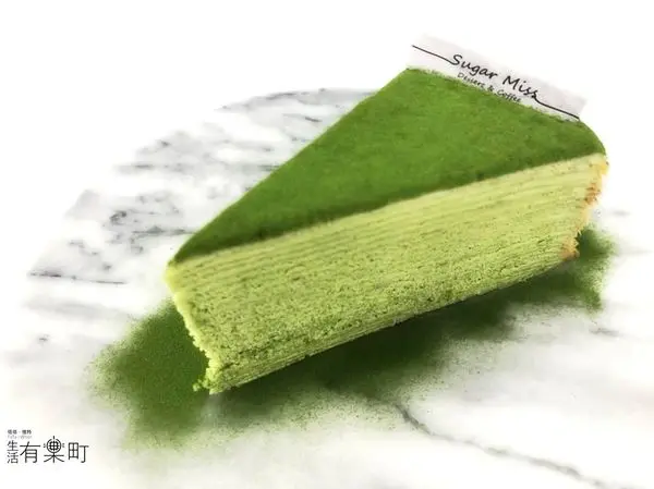 除了大理石蛋糕,還有美味的千層蛋糕也是不可錯過的喔。如果你剛好是千層控,同時也是抹茶控的話,那恭喜了!Sugar miss的小山園抹茶牛奶千層蛋糕,絕對可以滿足你的需求。小山園的抹茶實力無庸置疑,除了蛋糕本身滿滿的抹茶,盤面上也撒上了好多抹茶粉,抹茶香氣迎面而來,超濃郁誘人!直接大口切一口來吃看看,不知道為什麼總覺得千層蛋糕就是大口吃,才可以感受到千層的細緻感呀!有人跟塔塔一樣嗎~