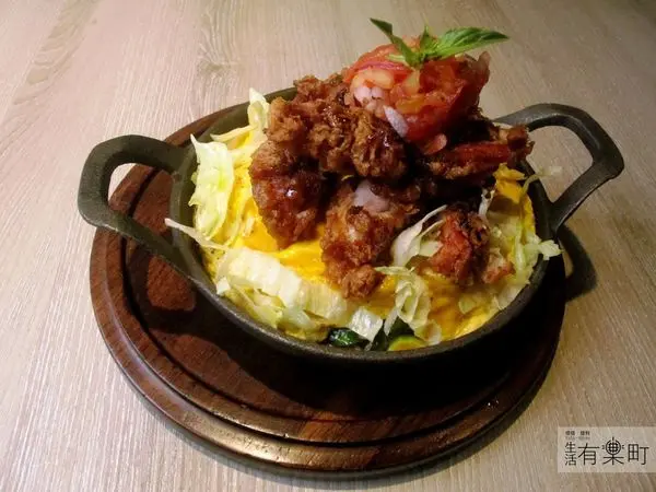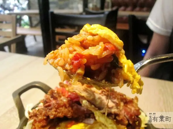 微辣酥脆的炸雞,口感外皮酥脆內裡多汁軟嫩,辣度還算溫和,搭配蕃茄紅醬起士飯剛好可以綜合炸雞的辣度,所以口味上不會過辣。炸雞也給得很大方,每一塊炸雞都非常大,整體分量其實還不少,光是吃炸雞就覺得好飽喔。歐姆蛋好軟嫩,熱呼呼入口非常好吃。