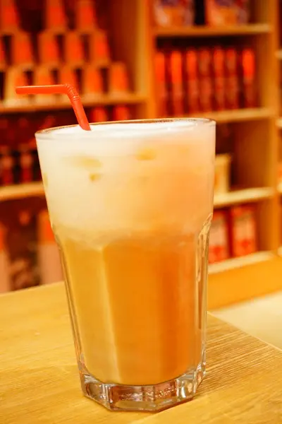 然後將抹茶充分攪拌喝起來是濃郁的奶昔味道偏甜