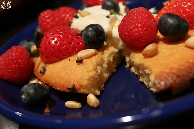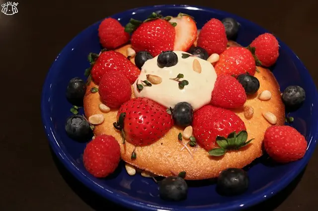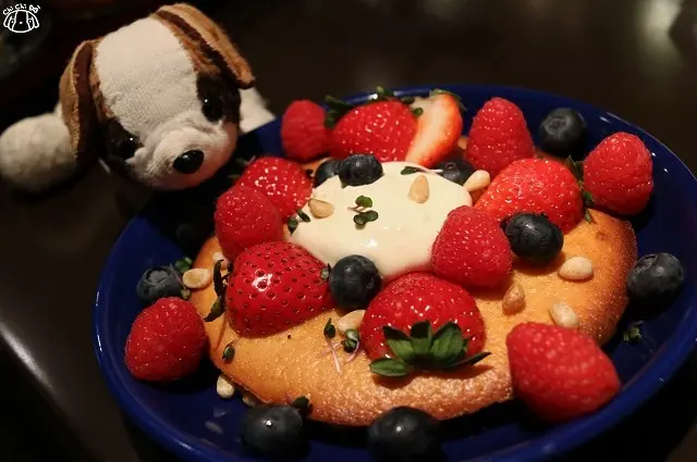 咖啡弄新推出的甜點,熱呼呼的蛋糕上頭擺飾了滿滿莓果好繽紛,