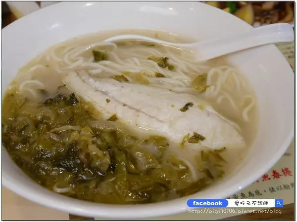 黃魚煨麵,上頭厚厚的一片黃魚肉是精選最鮮嫩的部位,裡頭完全沒有刺可以很放心的吃,鮮美的黃魚再加上微酸脆口的榨菜,