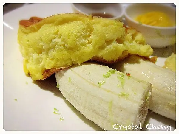 吃起來有一點像甜甜蒸蛋的味道,這裡的舒芙蕾口感是軟呼呼的。