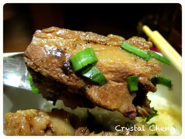 大碗的飯配上兩塊角煮,很像東坡肉的肉塊,