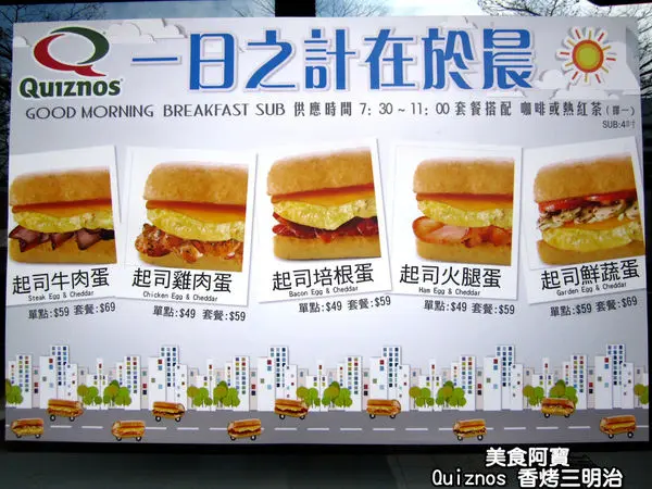 Quiznos的營業時間很長,七點半就能吃到現做的早餐,早餐時段是從7:30~11:00,
