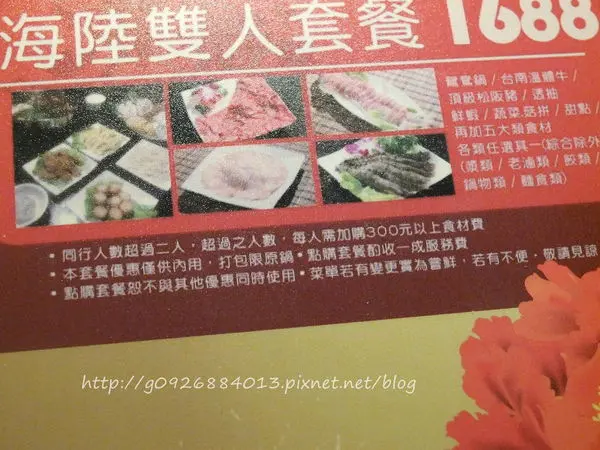 目前有三種雙人套餐,超值套餐是788,豪華套餐是1088,海陸套餐是1688