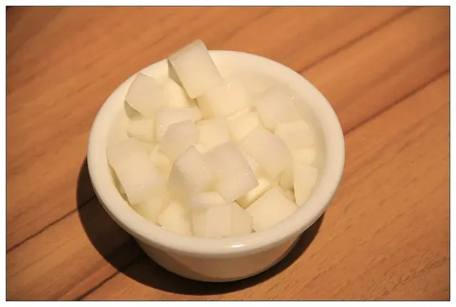搭配炸雞的白蘿蔔~脆口的白蘿蔔酸酸甜甜的很解膩~