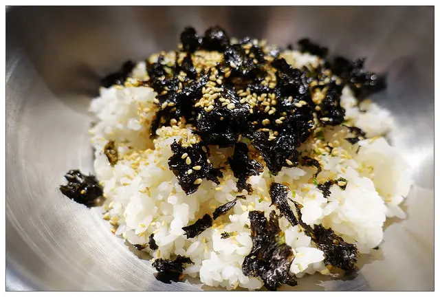 又Q又香的白飯撒上韓式專用海苔和芝麻~香氣十足