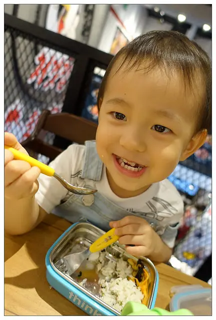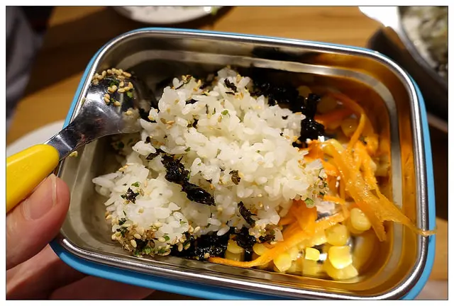 小傢伙吃的可開心的呢~他最愛海苔飯了!哈