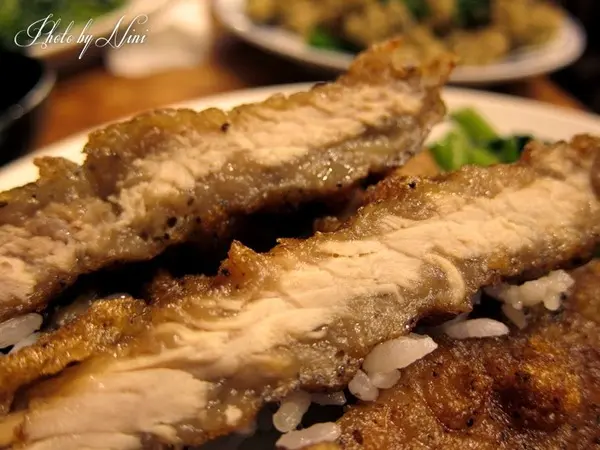 炸排骨的斷面照可見厚實以及微微帶點筋度油脂的肉質