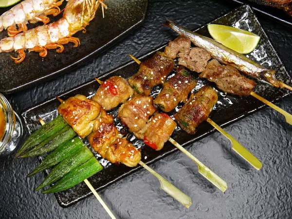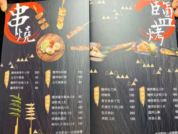 分別是五花牛蔥卷、鹽烤牛肋串、