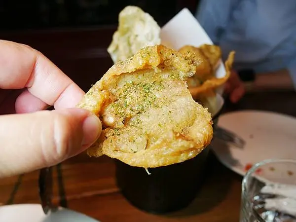 炸豬皮一樣是脆口的口感,上頭撒上椒鹽,一樣很特別~