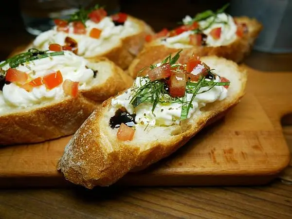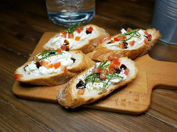 用下酒菜來開胃,當然還有不能放過的開胃前菜,今天吃的是布切塔絲綢起司,用蕃茄丁+起司再搭配法式長棍麵包,