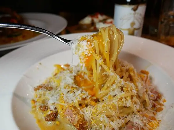 喜歡義大利麵的話,推薦來個培根鹹蛋黃起司麵,鹹蛋黃的香再搭配落日紅蛋的滋潤再加上起司的香濃,讓整個麵味道好有層次!