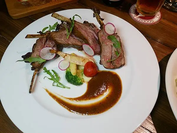 這羊排可是經過層層的手續才會呈現在你面前,先經過長時間的醃製,再下去煎,最後再經過烤,最後才會端上桌,