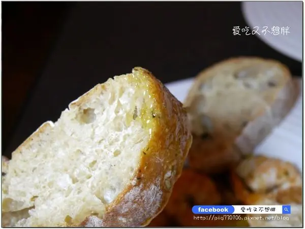 一旁的橄欖麵包也可以沾著底下的橄欖油一起吃,香氣十足!