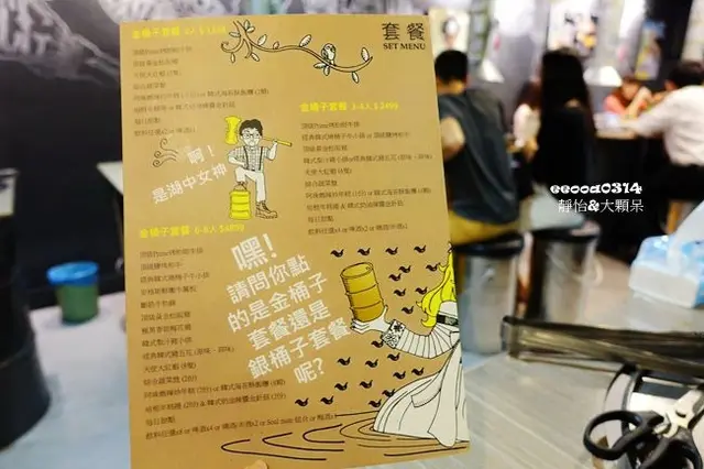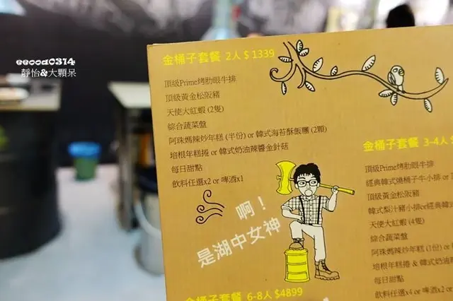 是以鐵桶(汽油桶)為主題的韓式燒烤店家,所以門口就擺放著大黃色的鐵桶以吸引大家的目光
