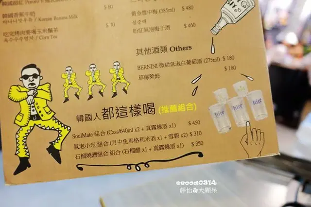吃燒肉一定要來瓶酒或飲料才過癮,套餐可以選擇兩瓶飲料,韓國飲料是兒子指定要喝的,外瓶好可愛也難怪兒子見到就直吵著要喝