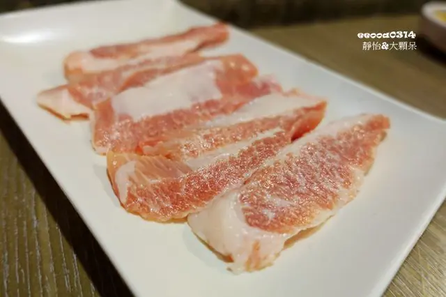 頂級黃金松板豬,色澤及油花看起來就好讚,也帶有厚度,並不是切薄薄的那種