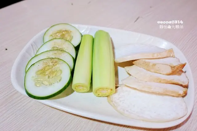 綜合蔬菜盤,吃肉吃海鮮當然還要來盤蔬菜呀~大黃瓜、玉米筍及杏鮑菇,很特別的是黃瓜沒有去籽耶~