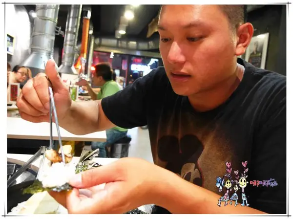麻煩你把包裝撕開用裡面的海苔來包飯好嗎?